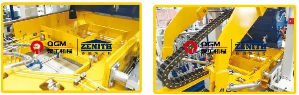Urządzenie zmieniające formę: Zainstalowane na ramie głównej maszyny jest używane do podnoszenia i ładowania form podczas zmiany form, wyposażonego w elektryczny wciągnik łańcucha i urządzenie do pieszych elektrycznych.